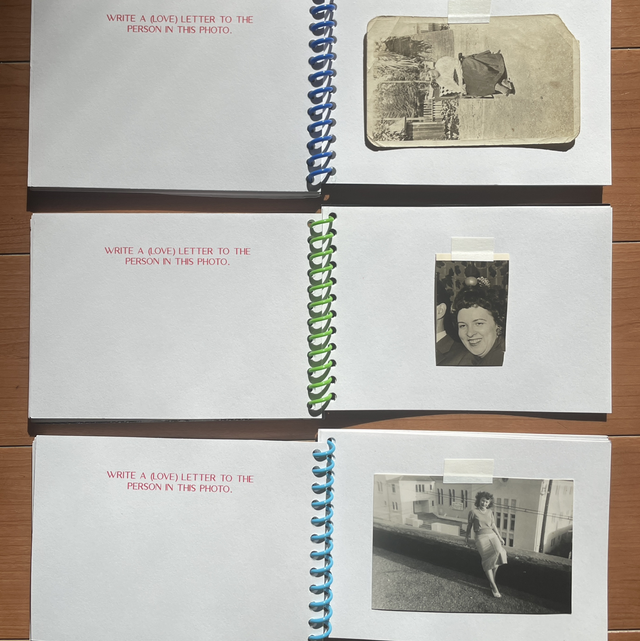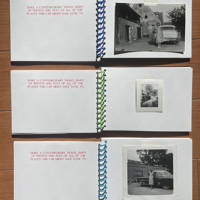 Each version of this unique publication is different. Although the prompts remain the same, the vintage black and white vernacular images change. Therefor please note that when ordering this publication we can not give you an advanced peek into the publication you will receive.