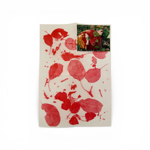 Each zine has a photograph of the fallen apple sewn onto the zine using a sewing machine.